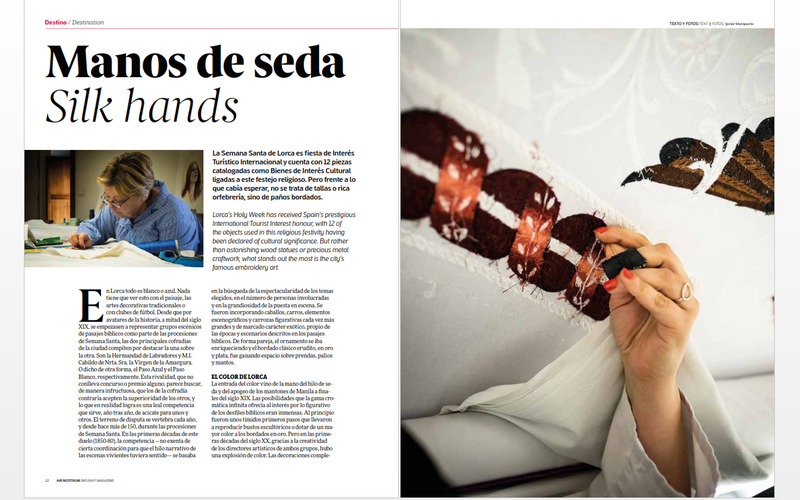 Las semanas santas de Lorca, Murcia, son muy especiales. Entre las características que convierten estas celebraciones en excepcionales esta la tradición de los bordados.